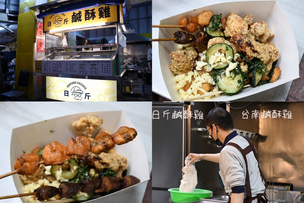 日斤鹹酥雞販售多種炸食材,經典的三角骨、鹹酥雞、雞米花,還有銀絲卷、雞蛋豆腐、甜不辣….等,還有必吃的雞排,招牌炸湯圓,跟多種雞心、雞屁股、雞皮…等